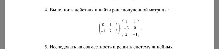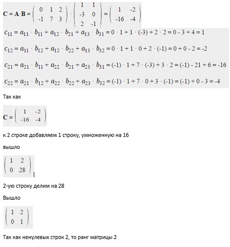 Все решение в фото,сначала находим результат умножения матрицы, а потом по кол-во ненулевых строк - ранг.