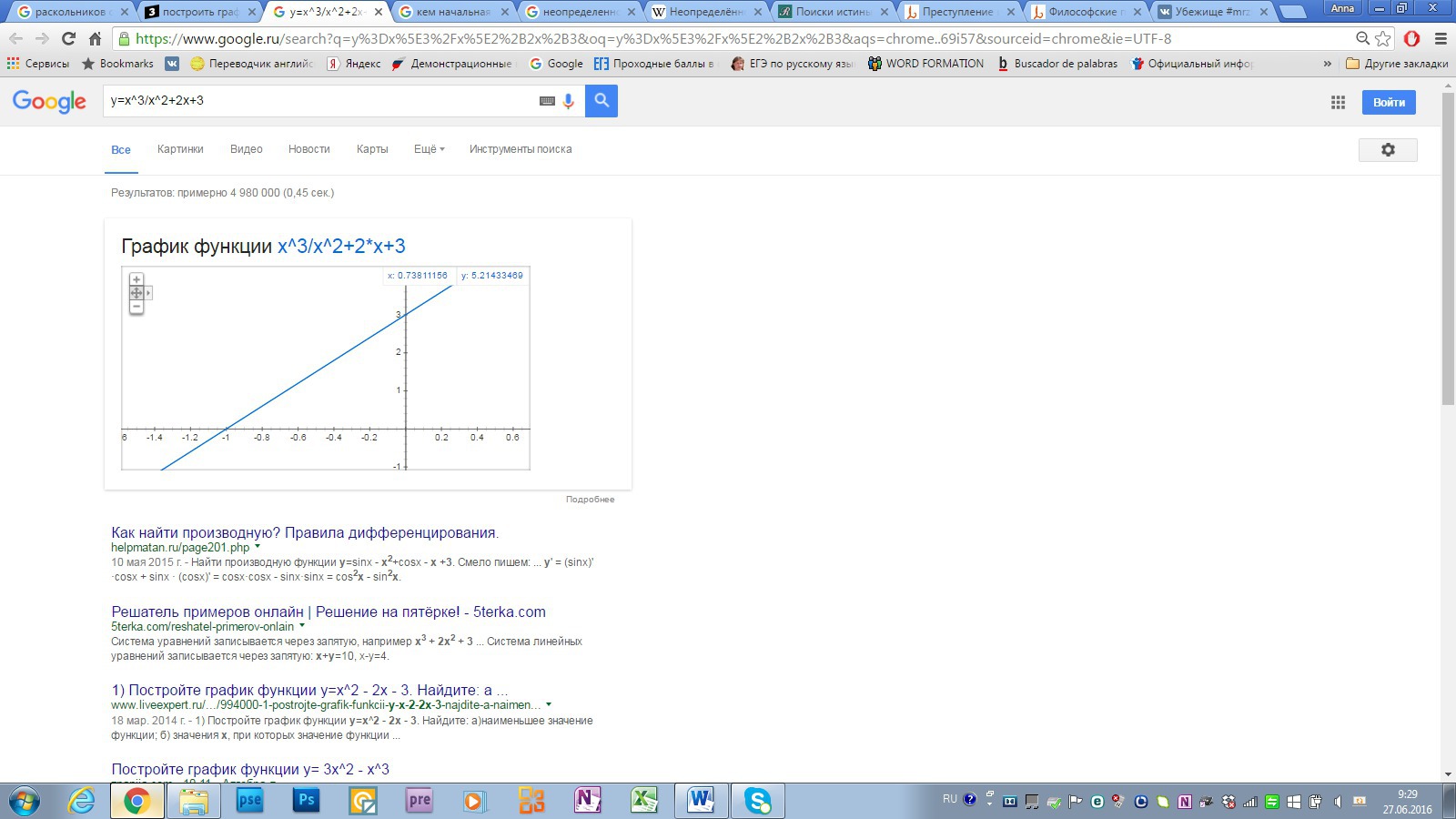 по иксу проходит через -1, по игреку через 3