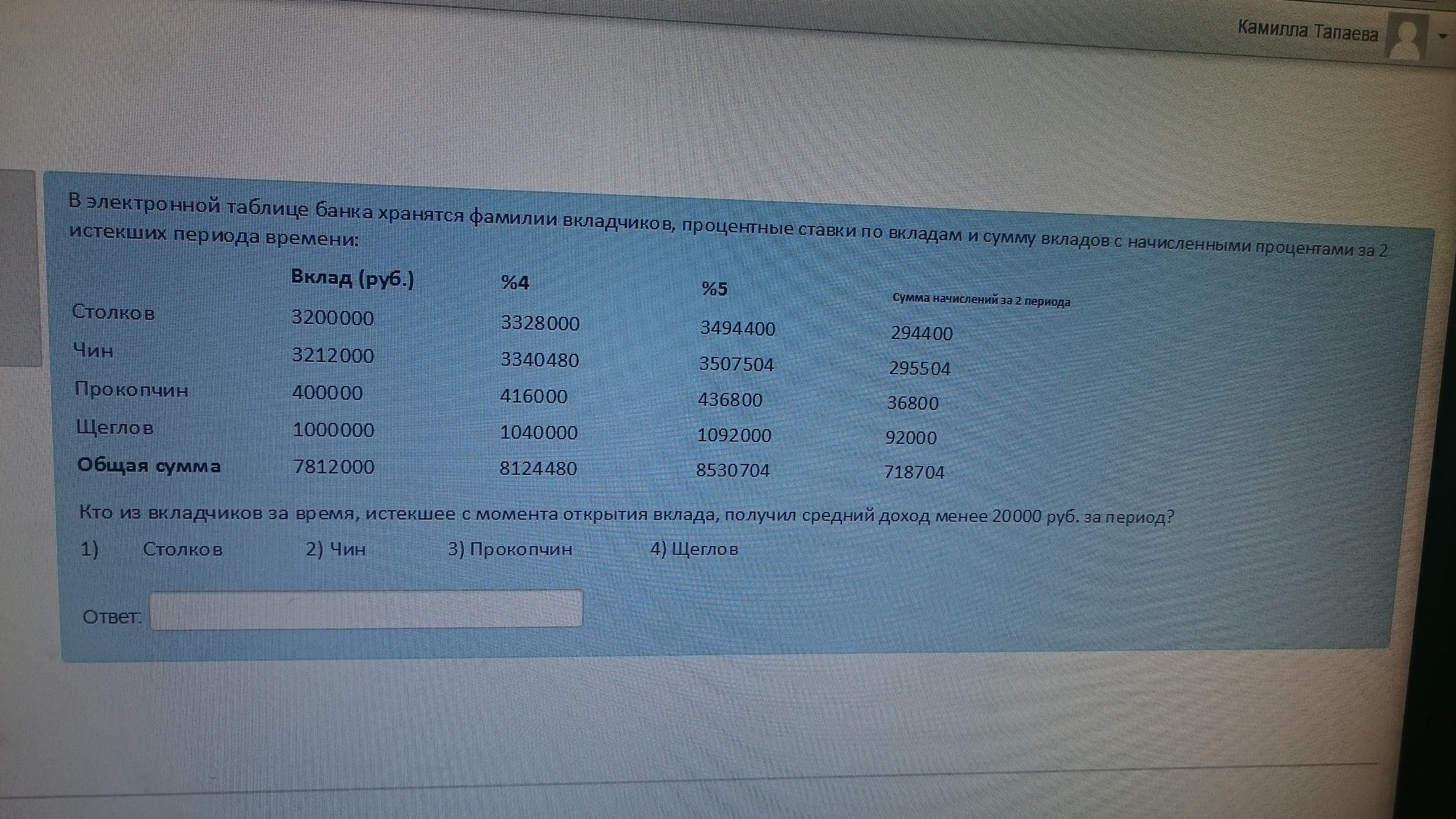 Ответ: 3)Прокопчин