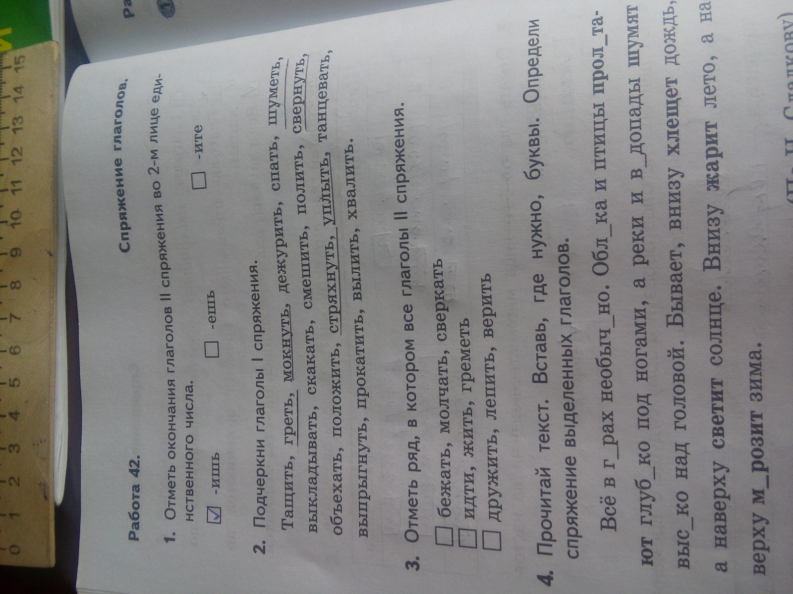 1спряжение греть, мокнуть, Выкладывать, скакать, полить, свернуть, объехать, стряхнуть, уплыть, танцевать, выпрыгнуть, вылить.