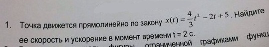 Материальная точка движется прямолинейно по закону x(t)=4/3t2-2t+5