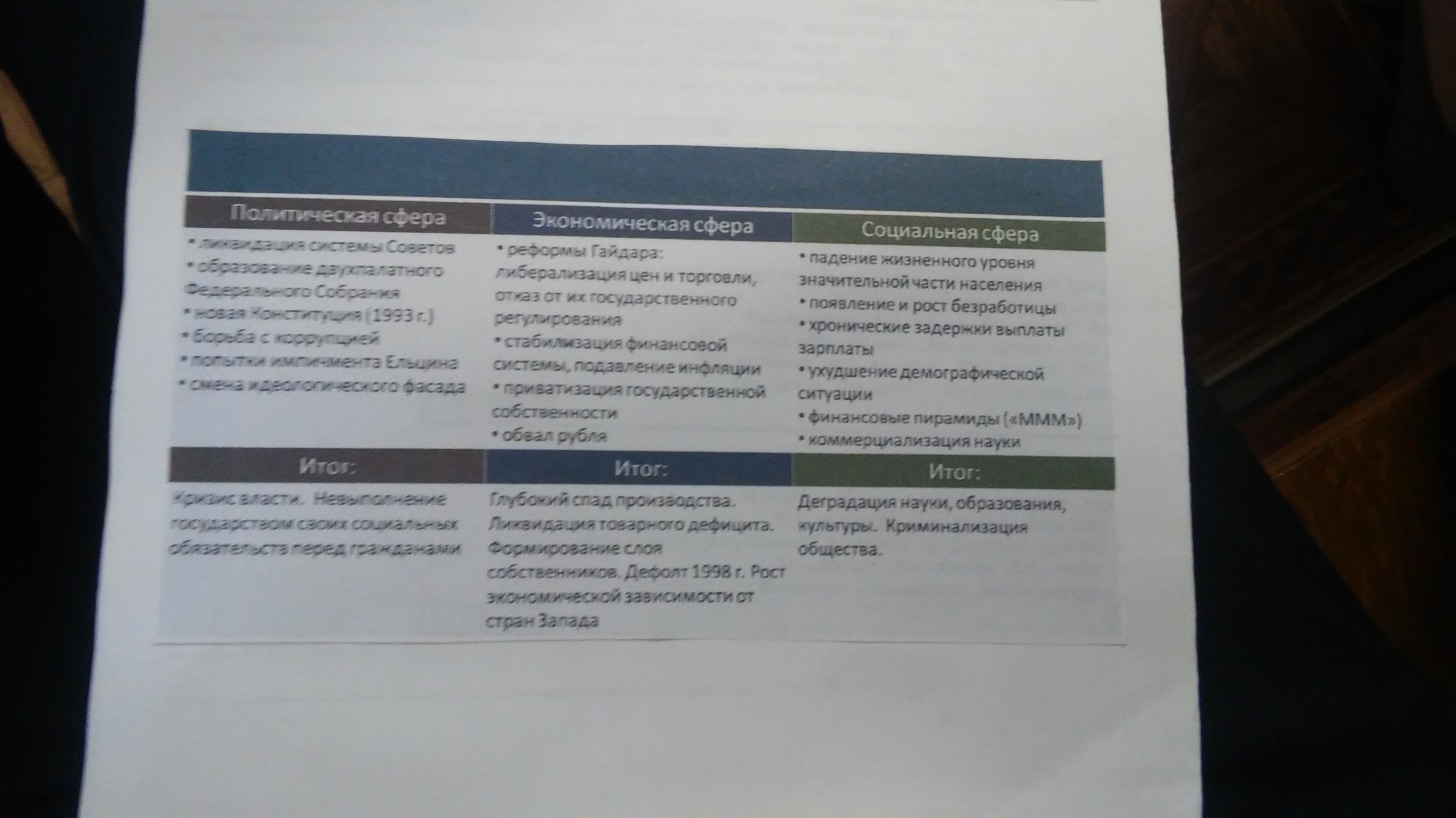 Обзор основных сфер жизни общества и государства в России в 90-е гг XX века