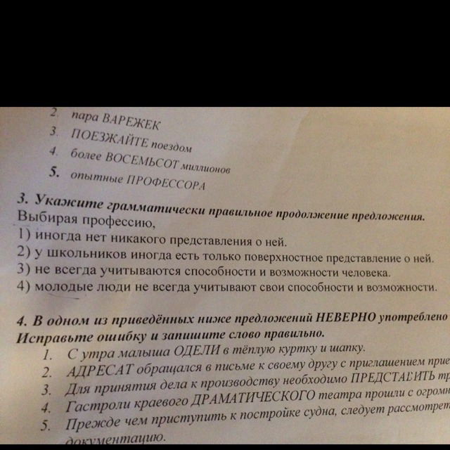Выбирая профессию, молодые люди не всегда учитывают свои возможности т способности. Ответ: 4