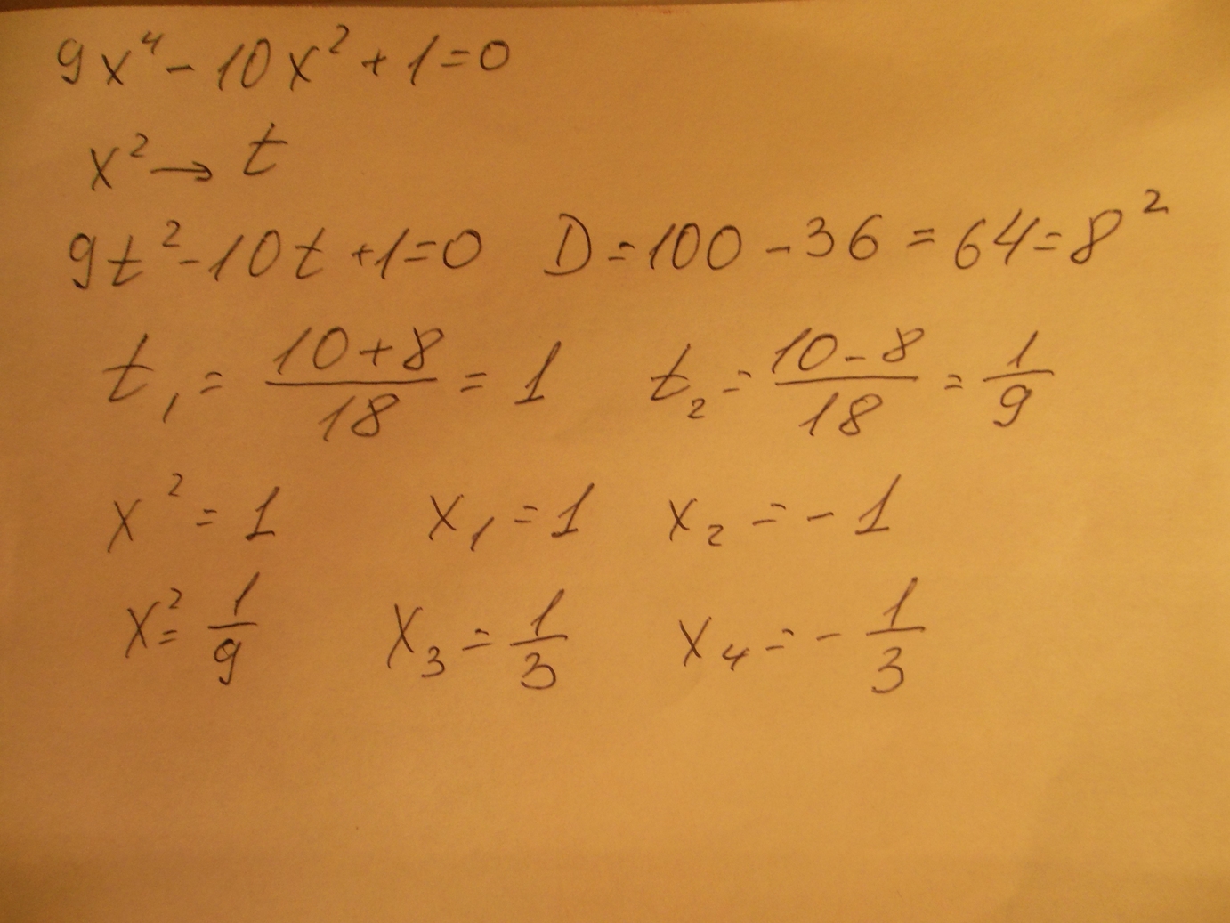 9(x²)²-10x²+1=0