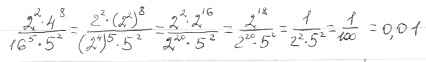 2^2*4^8/16^5*5^2=frac{2^{2}*4^{8}}{4^{10}*5^{2}}=4^{8-10}*frac{4}{25}=4^{-2}*frac{4}{25}=frac{1}{16}*frac{4}{25}=frac{1}{100}=0.01[/tex]