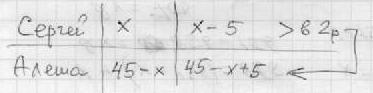 Ответ: у Сергея было 35 грибов, а у Алеши - 10 грибов