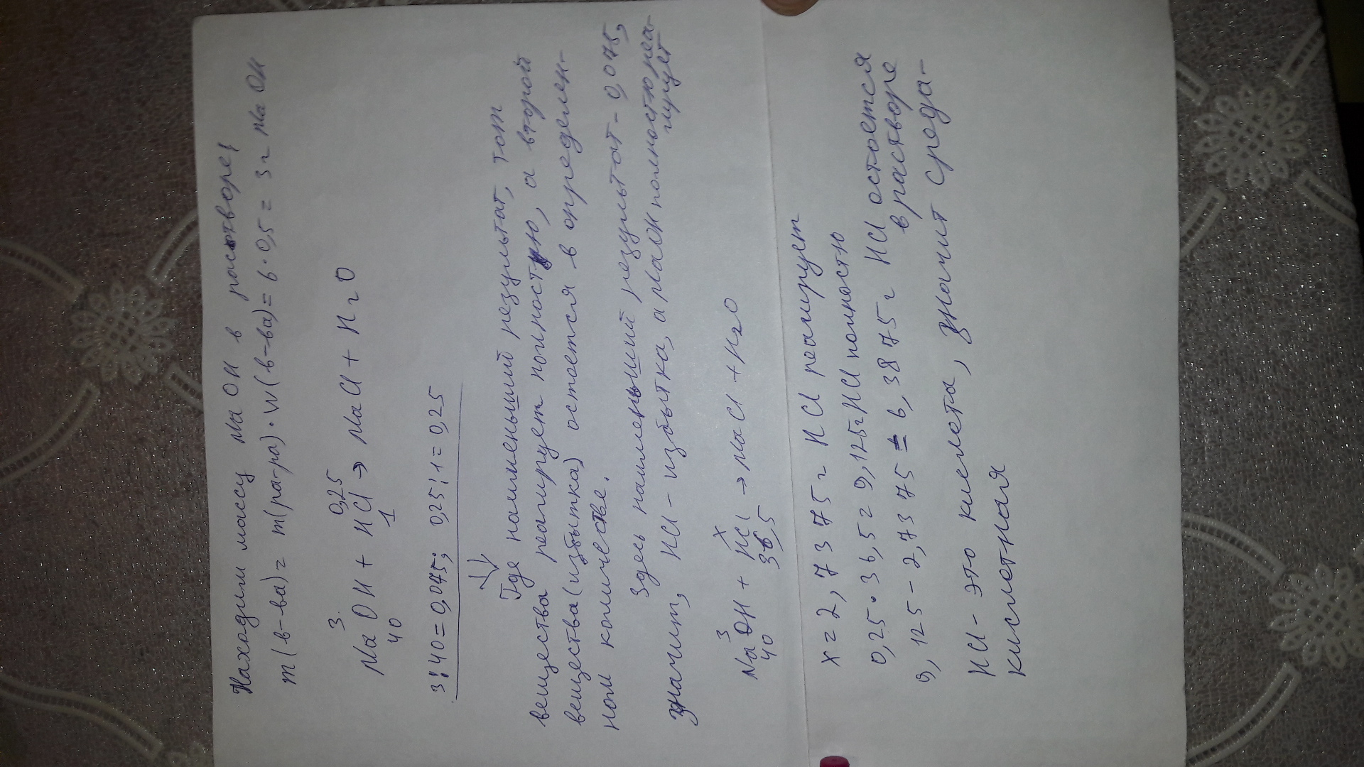 К соляной кислоте, содержащей 0,250 моль хлороводорода добавили 6.00 г 50%-ого раствора гидроксида натрия. Какая реакция среды (кислая, нейтральная, щелочная) будет у получившегося раствора?