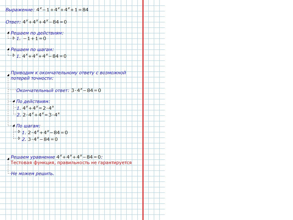 4^х • ( ( 1/4 ) + 1 + 4 ) = 84