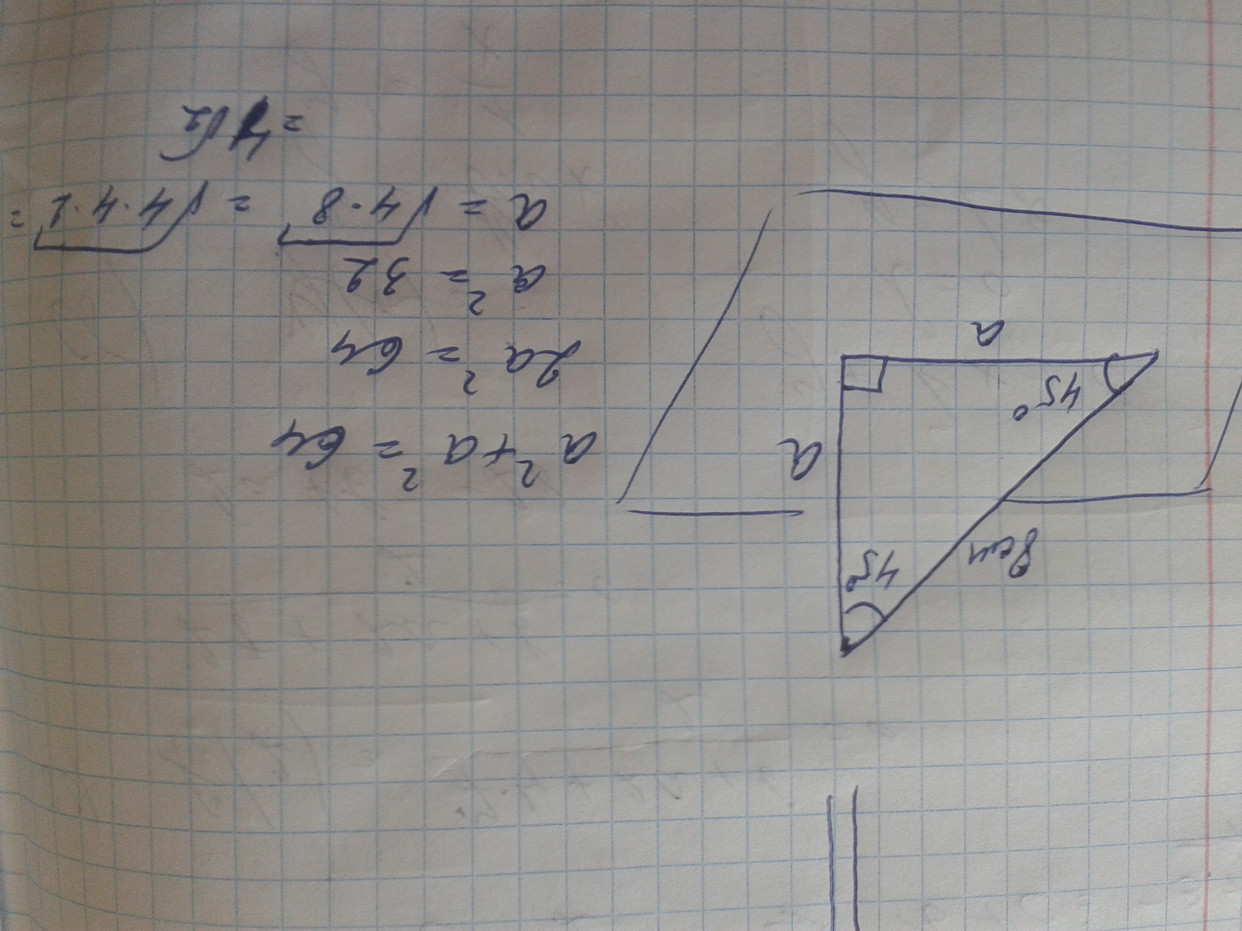 из некоторой точки проведены к данной плоскости пенпедикуляр и наклонная известно что наклонная =8 см угол между наклонной и плоскостью 45° найдите длину пенпедикуляра на эту плоскость.