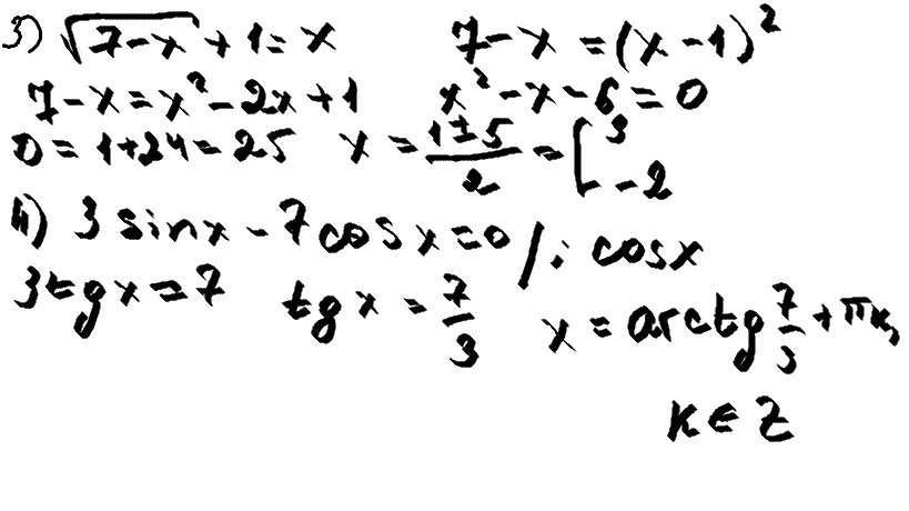 √(7 - х) = х -1 (возведем обе части в квадрат)