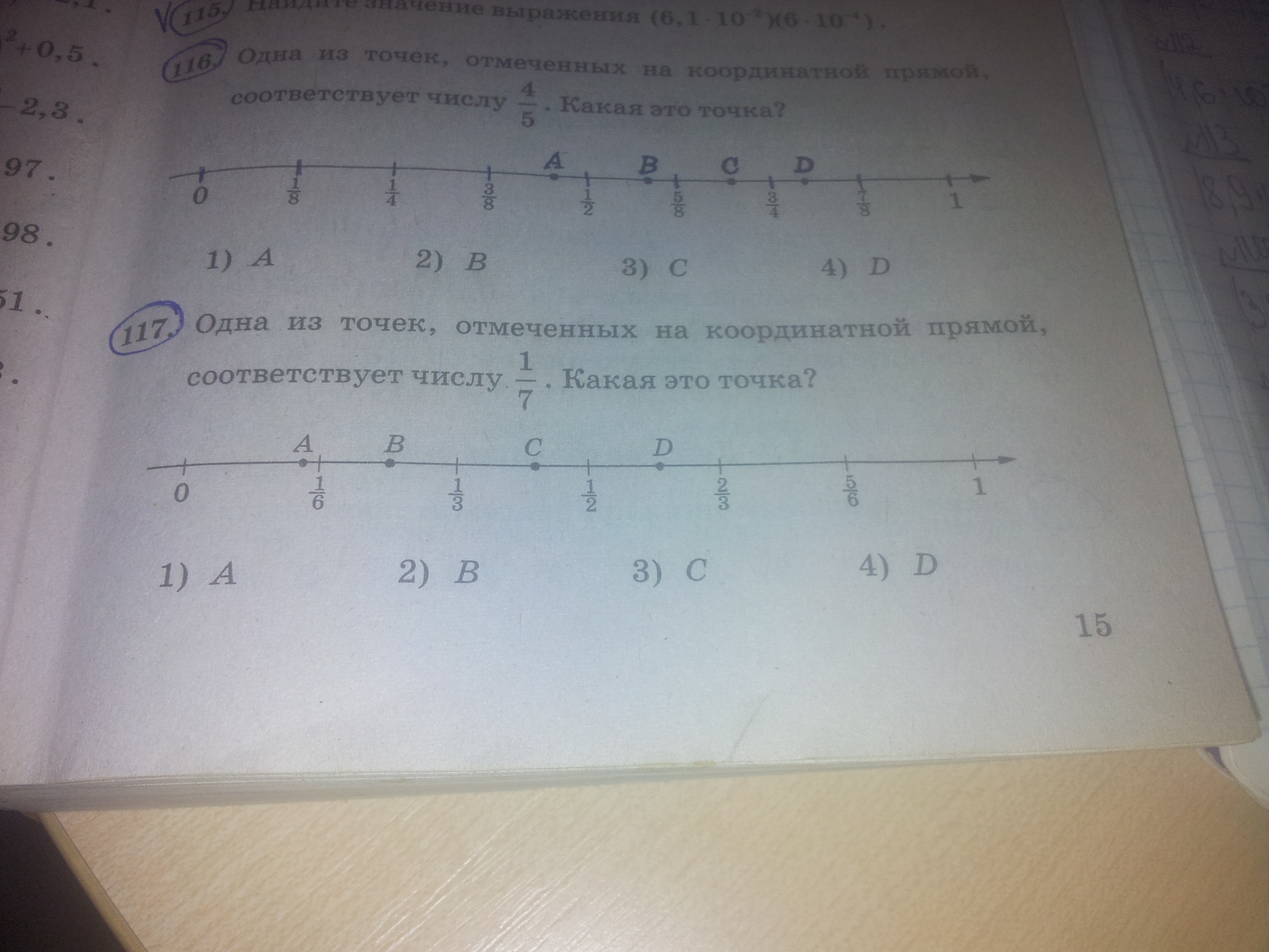 Получается 1/6 > 1/7 ⇒ 1/7 должна находиться ближе к началу координатного луча ( т.е. ближе к 0) ⇒ точка А (1/7).