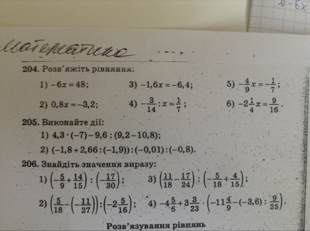 Решите пожалуйста))) #204-решите уравнения. #205-выполните действия. #206-найдите значения выражения.