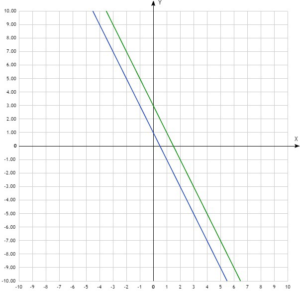 Теперь хорошо видно, что это два уравнения параллельных прямых, поэтому у них не общих точек и, значит, нет решения системы уравнений.