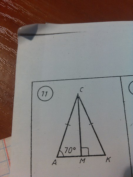 Угол AKC=70, т.к треугольник равнобедренный, а значит угол ACK=180-(70+70)=180-140=40