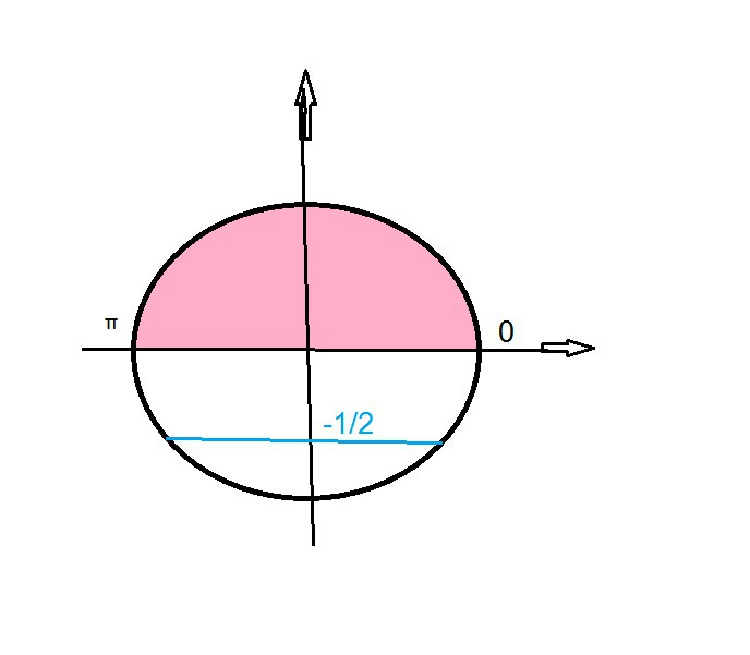 Корни уравнения в третьей и четвертой четвертях, там синус принимает отрицательные значения и ни один из корней не находится на отрезке [0;π].