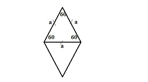 кщо діагональ ромба рівна його стороні, то маємо рівносторонній трикутник, кути якого рівні 60 градусів. Тому гострий кут ромба 60 градусів.