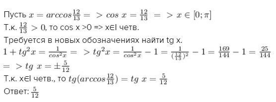 Пусть ![x= arccosfrac{12}{13} = textgreater cos x=frac{12}{13} = textgreater x in [0; pi ] x= arccosfrac{12}{13} = textgreater cos x=frac{12}{13} = textgreater x in [0; pi ]](https://tex.z-dn.net/?f=x%3D+arccosfrac%7B12%7D%7B13%7D+%3D+textgreater+++cos+x%3Dfrac%7B12%7D%7B13%7D+%3D+textgreater+++x+in+%5B0%3B+pi+%5D)
