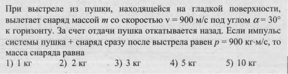 Данные импульсы равны по модулю, но противоположные по знаку, так как заданный импульс включает в себя проекция на все оси, то импульс пушки и горизонтальная проекция сократятся и останется только вертикальная проекция импульса: