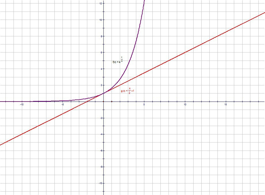 y=x/2+1 уравнение касательной к графику функции y=e^(x/2)