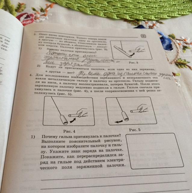 На конце палочки образуется избыточный положительный заряд. На гильзе со стороны палочки отрицательный, поэтому они притягиваются. Если же их соприкоснуть, то заряд распределиться равномерно