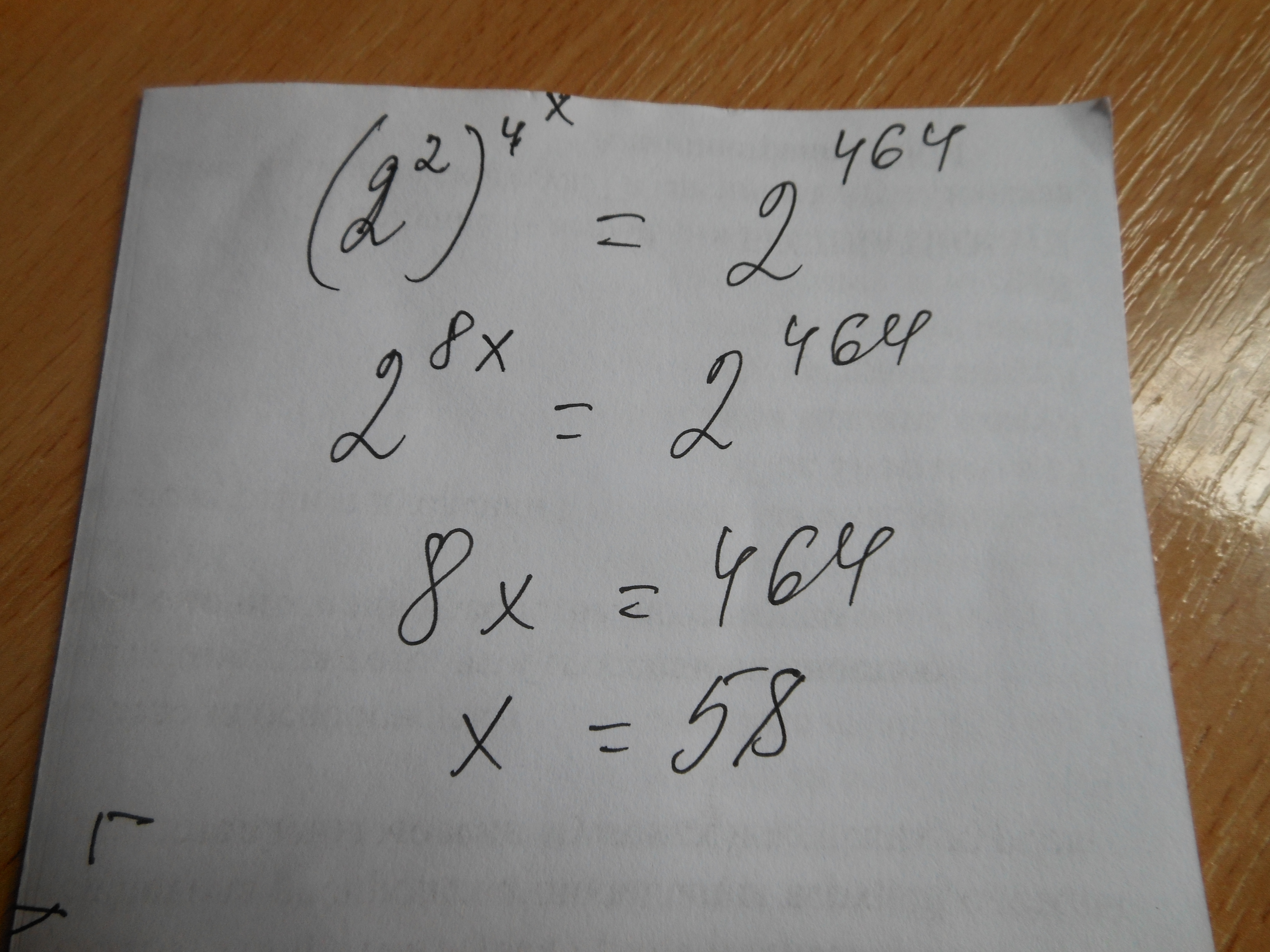 Пока мы не можем решать, так как коэффициенты в обеих частях уравнения разные. Четвёрка же равна двум в квадрате! – так и пишем: