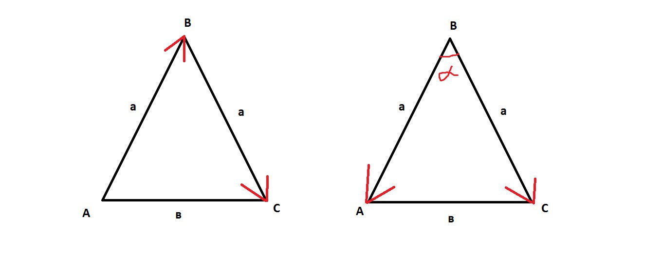 на рисунке на левом треугольнике показаны векторы АВ и ВС, тогда