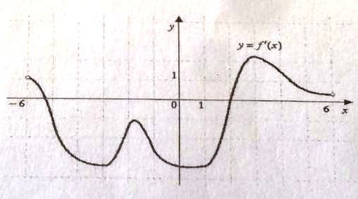 На рисунке изображён график производной функции, определённой на интервале (-6; 6). Найдите точки экстремума функции на интервале (-4;5).