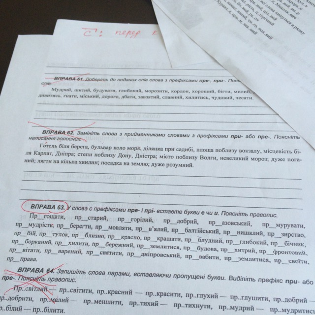 Усюди и, крім слів престарий, предобрий, премудрість, презирство, прекрасно, преглибокий, прехитрий