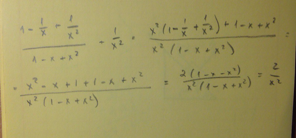 И если сложить x^2 - x + 1 + 1 - x + x^2 то выйдет 2 * x^2 - 2x + 2 то есть 2 * (x^2 - x + 1)