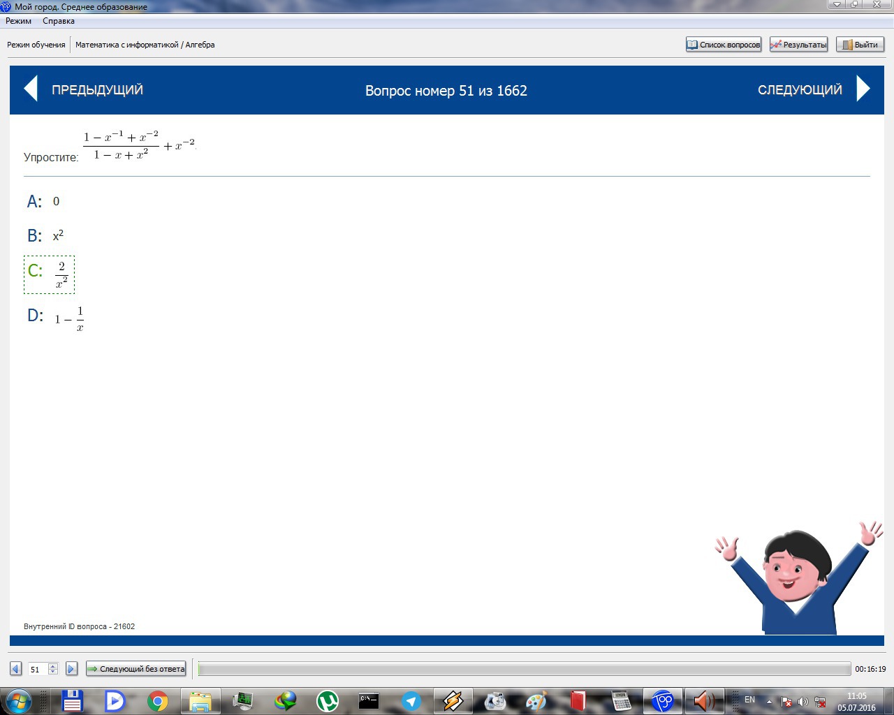 Если умножить x^2 на 1 / x^2 получится 1
