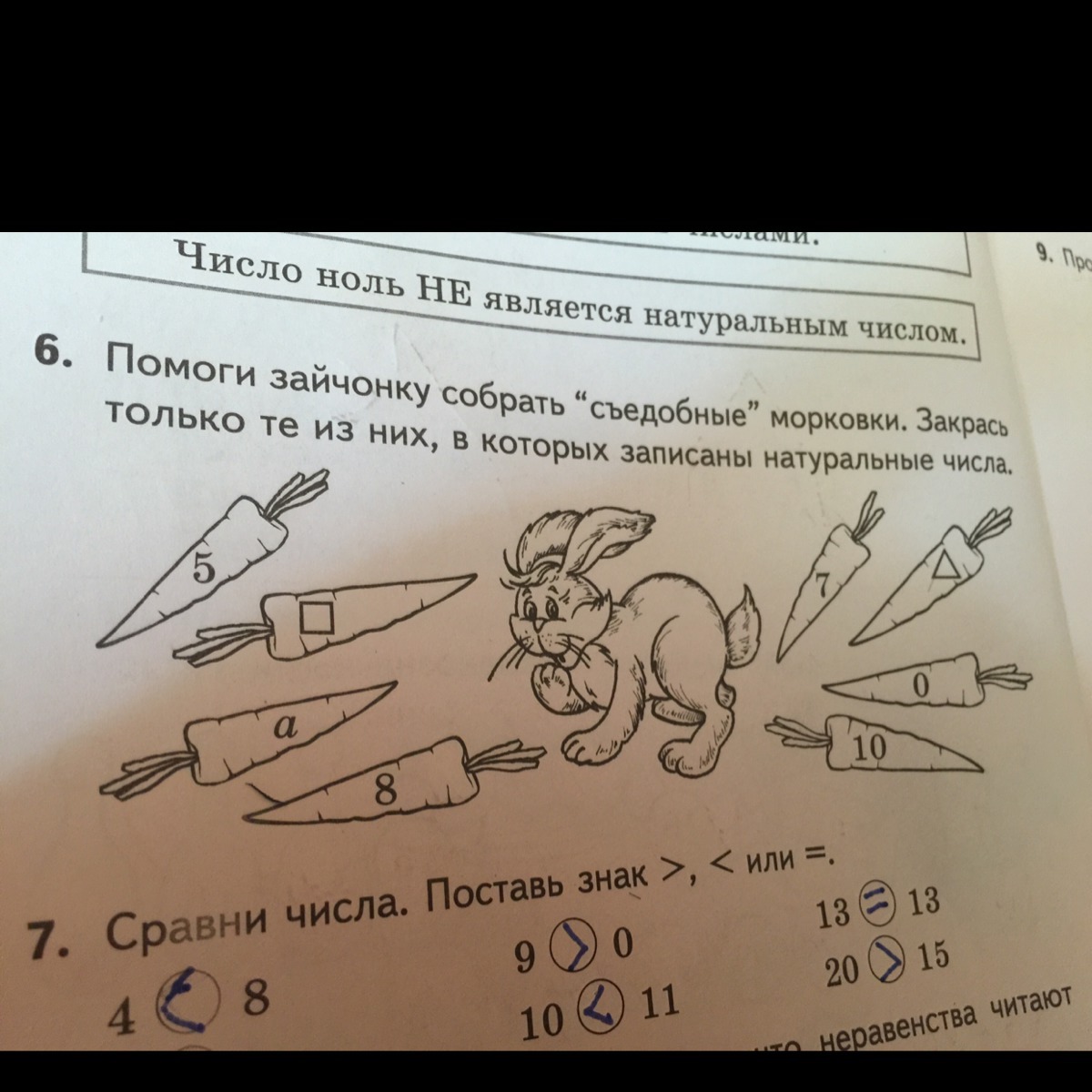 5, 8, 10, 7-вот морковки с натуральными числами, не берите морковку 0, потому что 0-это не натуральное число
