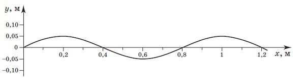 По поверхности озера со скоростью 1 м/с распространяется волна, профиль которой имеет вид синусоиды, изображенной на рисунке. Определите период вертикальных колебаний поплавка на поверхности озера (в секундах).
