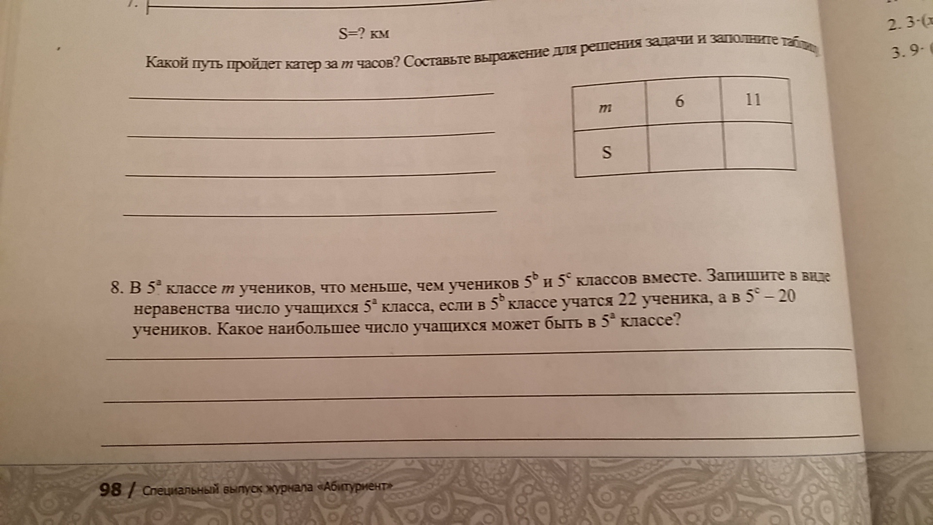 8. Т.к в 5а классе меньше учеников, то неравенство такое: 5a<5b+5c; <= 5a<22+20. Т.к тут строгое неравенство, то ответ 43.
