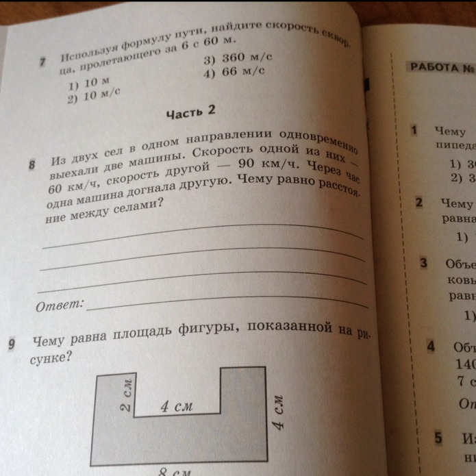 7) S=U×t ; U=S÷t=60÷6=10м/с