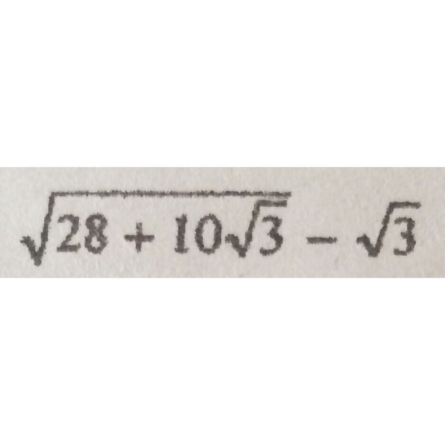 sqrt{28+10 sqrt{3} } - sqrt{3} = sqrt{28+2* sqrt{3} *5} - sqrt{3} =