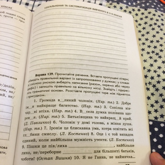 1. Громада - вЕликий чоловік. 2. Добре ім ' я - найкраще богатство. 3. Сопілка - вівчарЕві втіха. 4. ВЕсела думка - половина здоров ' я. 5. Батьківщина - то найкращИй край. 6. Чоловік у домі - голова, а жінка - душа. 7. Іронія - це блискавка ума, котра освітить всі глИбини смислу. 8. Оце і є той випадок єдиний, коли найбільше мужність - утекти. 9. Пішки - це півлиха, найбільше лихо, НЕпереборне для більшості батьків, - чоботи! Я не Ганна, не наймички.