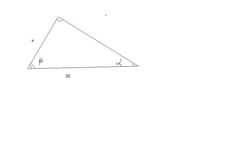sin α=a/(2R) (т.к. гипотенуза есть диаметр описанной окр.)