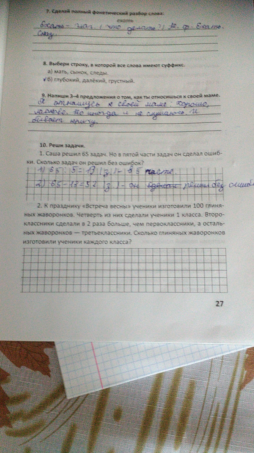 1) 100 : 4 = 25(жав.) сделал и ученики первого класса