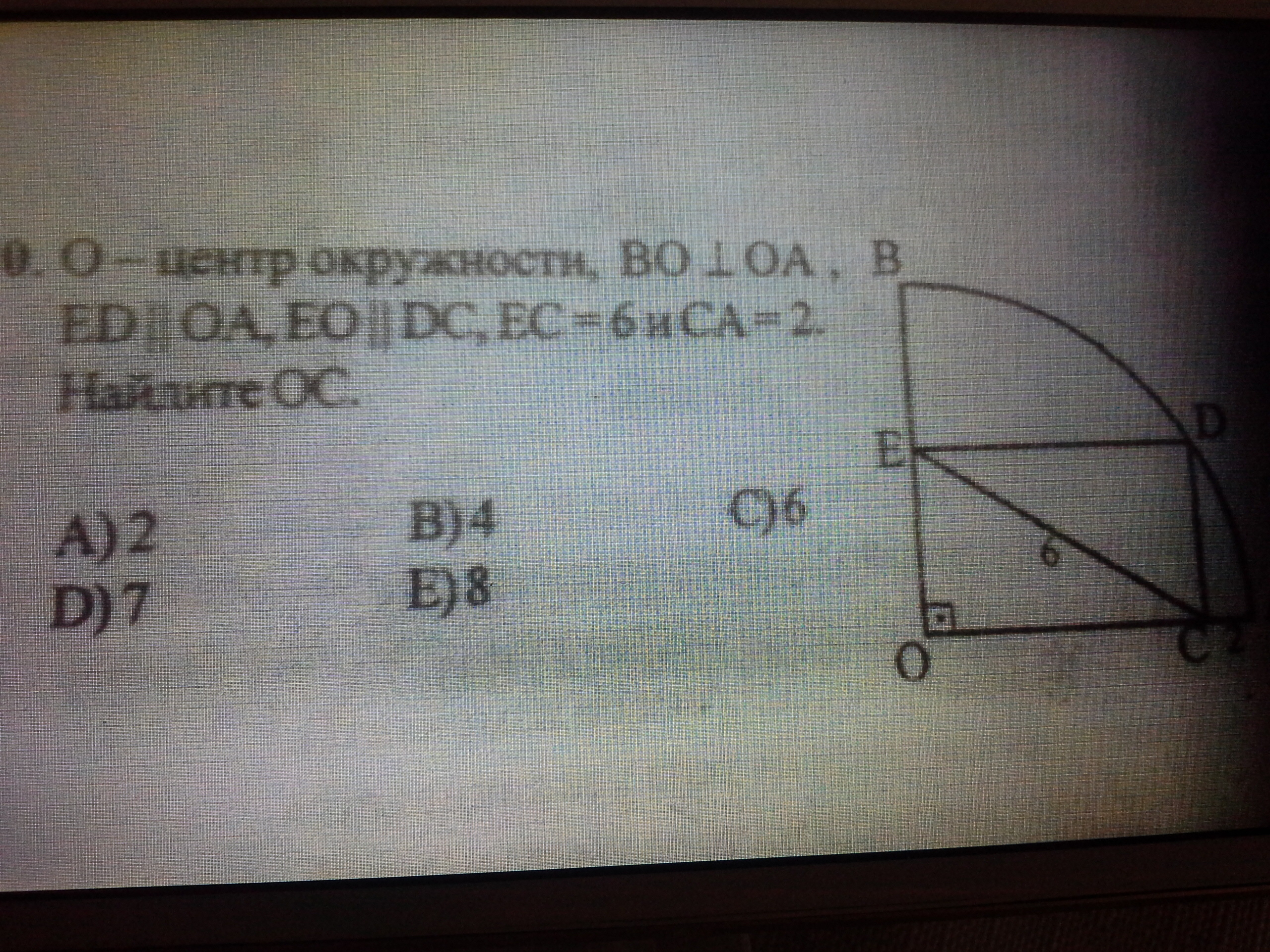 EDCO - прямоугольник, ⇒ EC=OD=R=6, тогда OC=6-2=4