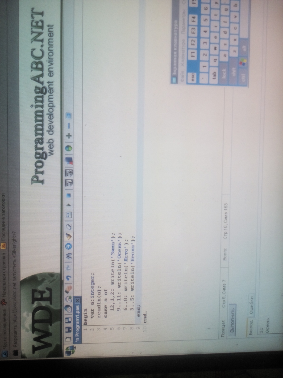 Составить программу, выводящую время года в зависимости от номера месяца введенного пользователем.