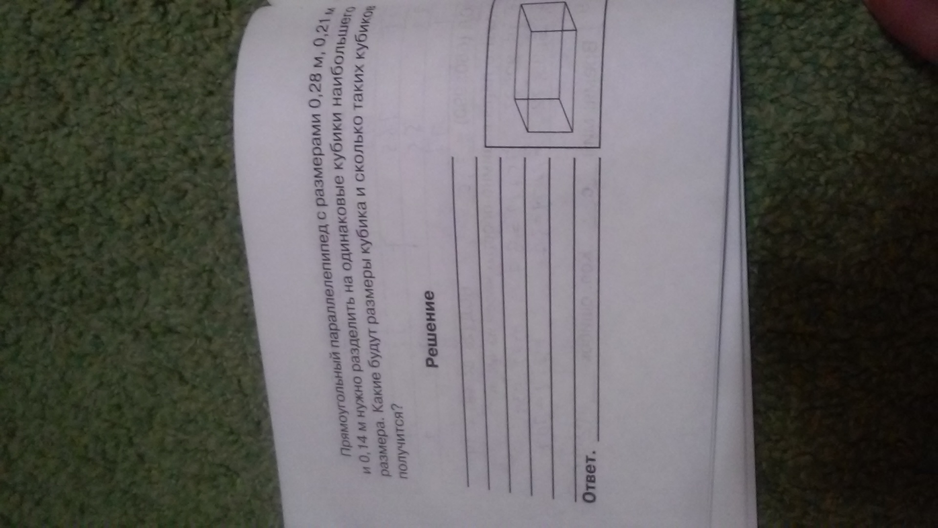 Объем прямоугольного параллелепипеда: 0,28*0,21*0,14 м^3.