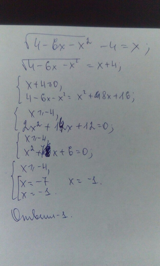 Это уравнение равносильно системе двух уравнений (переход от второй строчки к третьей). Дальше банально решается квадратное уравнение (я решала с помощью обратной теоремы Виета, то есть подбирала корни, но, возможно, кому-то удобнее дискриминантом - кому как), после чего оба корня проверяются на соответствие первому условию системы.