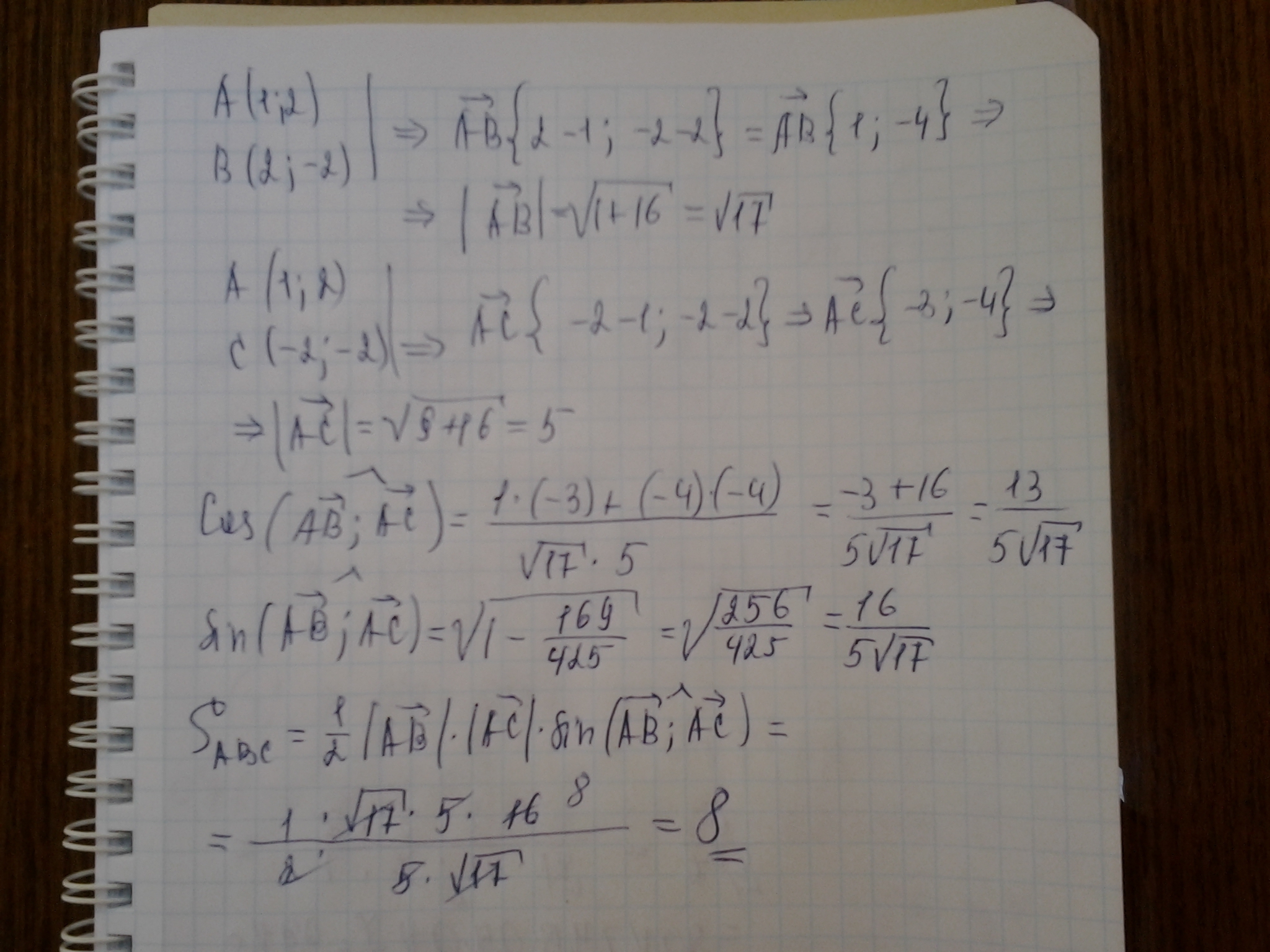 Применены : формулы координат вектора, формула длины вектора, формула площади треугольника