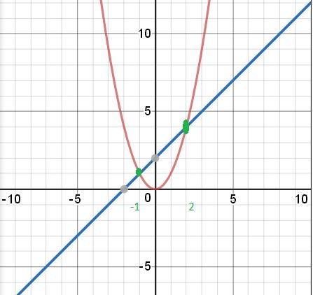 2) Найдите координаты точек пересечения графиков функций, данных в 1 задаче, решая систему уравнений. При этом для нахождения корней многочлена разложите уравнения на множители.
