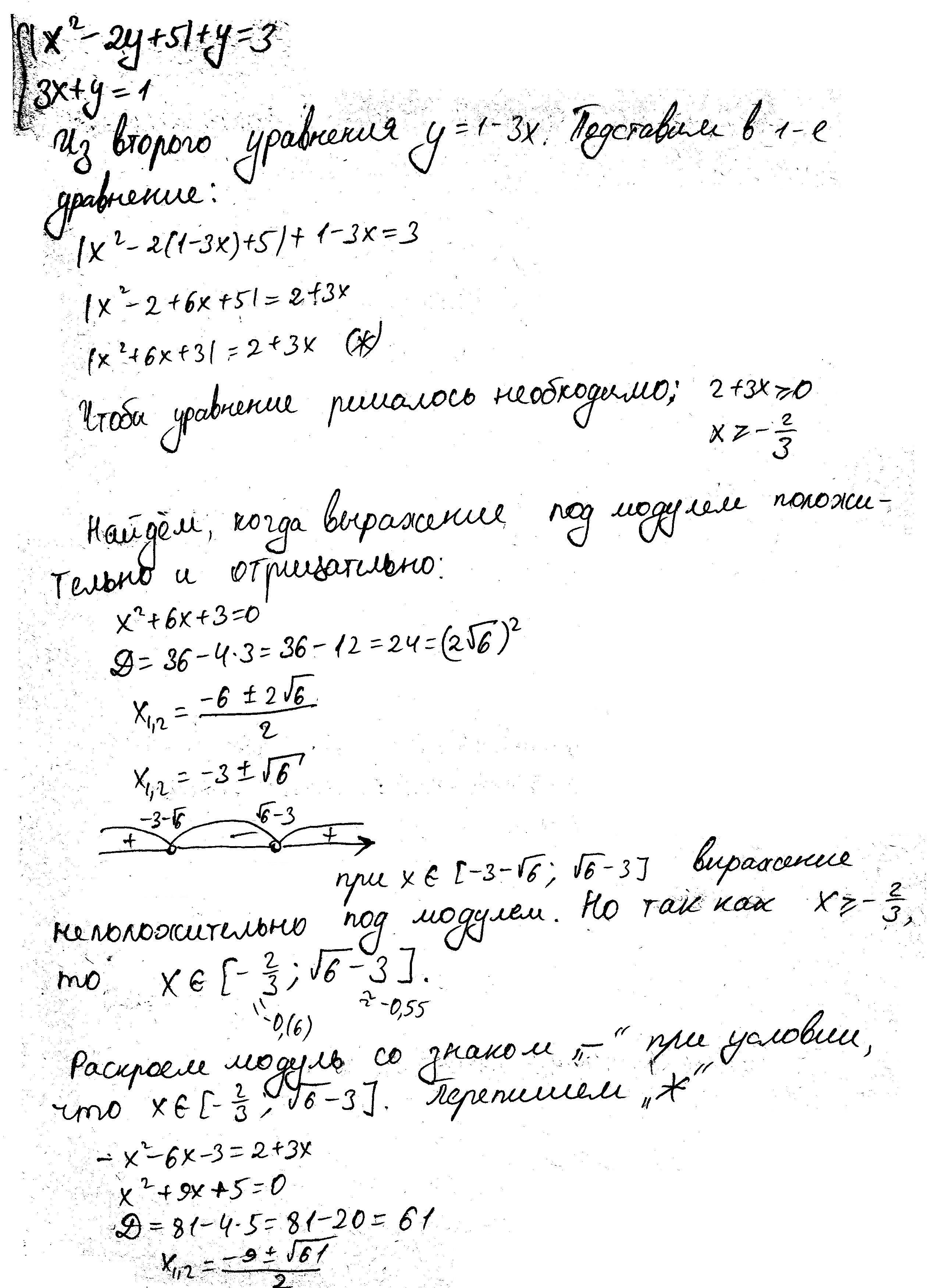 |х^2 - 2(1-3x) + 5| + 1-3x = 3