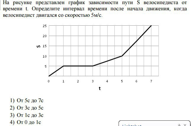 Так как перемещение (путь по графику) не меняется, тело покоится, то есть его скорость равна 0м/с