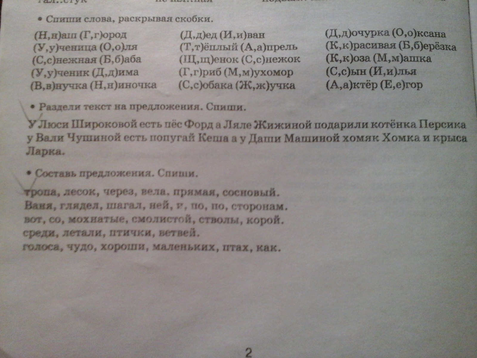 У Люси Широковой есть пёс Форд.А Ляле Жижиной подарили котёнка Персика.У Вали Чушиной есть попугай Кеша.А у Даши Машиной хомяк Хомка и крыса Ларка.