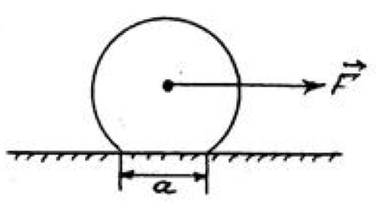На колесе радиусом r=3,2 см имеется плоская часть длиной а=2 см. При каком коэффициенте трения (мю) колесо будет скользить, а не катиться по гладкой поверхности, если его плавно тянуть за ось вращения?