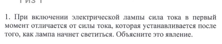 В момент включения спираль находится в холодном состоянии. В процессе свечения спираль нагревается. сопротивление нити накала растет. сила тока уменьшается.