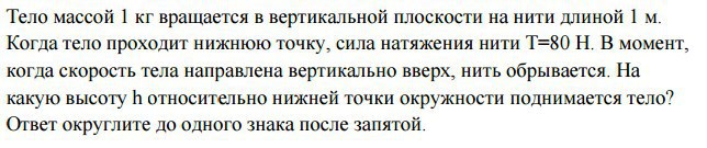 когда скорость тела направлена вертикально вверх, нить обрывается. На
